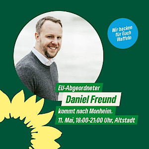 Am 11. Mai von 18:00-21:00Uhr steht der Europaabgeordnete Daniel Freund für Fragen und Diskussionen an unserem Info-Stand in der Altstadt zur Verfügung. (!! Es gibt Waffeln !!)